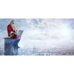• Weihnachtliches Motivpapier mit Weihnachtsmann über den Dächern der Stadt