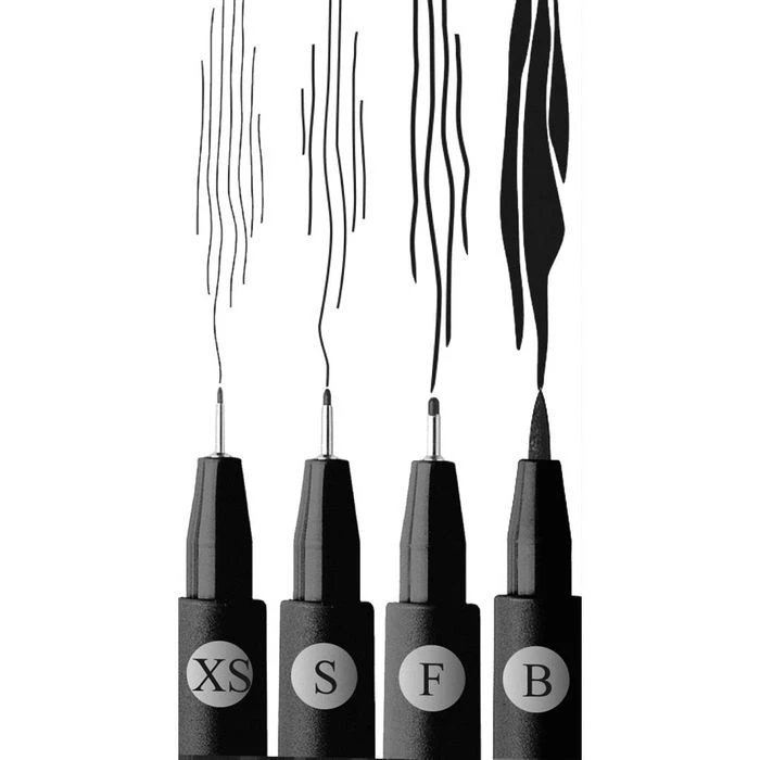 Strichbreite: XS = 0,1 mm, S = 0,3 mm, F = 0,5 mm, B = Pinselspitze