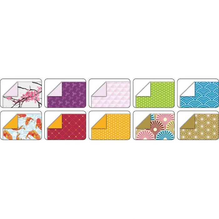 • 50 Faltblätter aus 80 g/m² zweifarbigem Musterpapier