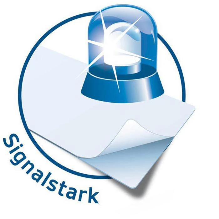 sonstiges: selbstklebend, schnittgestanzt, mit Rand, chlor- und holzfreies Papier, Signalstark
