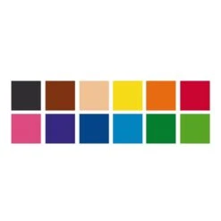Farbtöne: schwarz, dunkelbraun, grün, apfelgrün, gelb, orange, rot, pink, flieder, hellblau, marineblau, fleischfarben