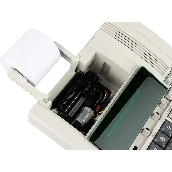 sonstiges: MwSt-Berechnung, Postenzähler, Rundungsfunktion, Speicher, 00-Taste, Prozent-/Deltaprozentrechnung, Nicht-Druck-Modus,11 Währungsumrechnungen (5 programmierbar), Gewinnspannenrechnung, Fließ- und Festkommaberechnung, Vorzeichenwechsel, Nichtrechentaste