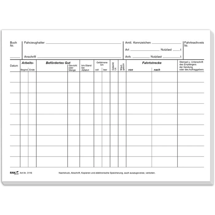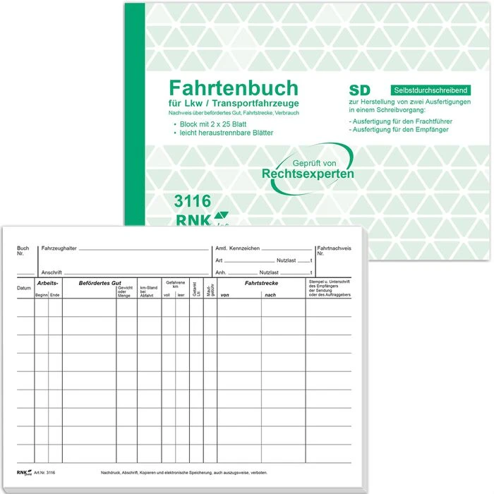 für LKW, selbstdurchschreibend, 2 x 25 Blatt