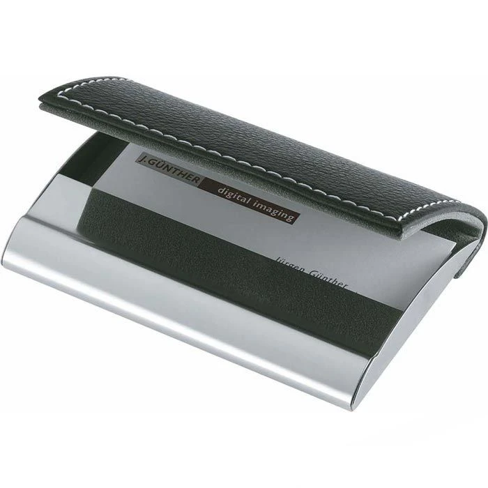 • Visitenkartenetui aus Kunstleder und Edelstahl für bis zu 20 Karten