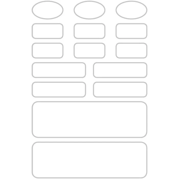 Maße: 25 x 15 mm, 25 x 12 mm, 45 x 12 mm, 95 x 30 mm